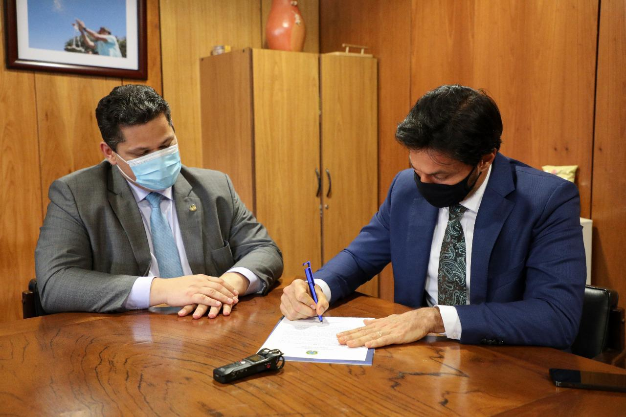 Ao assinar a portaria, o ministro Fábio Faria pediu a Davi para também assinar o documento, como “testemunha”, e não poupou elogios ao senador.