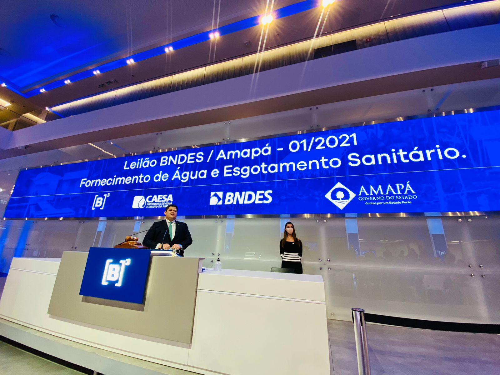 Esse é o primeiro grande leilão de saneamento da Região Norte do país. Na Bolsa de Valores, para presenciar esse feito histórico, estiveram o ministro Rogério Marinho (MDR); o presidente do BNDES, Gustavo Montezano; o governador Waldez Góes; o senador Davi Alcolumbre e Pedro Maranhão (secretário nacional de Saneamento), além da coordenadora da bancada federal do Amapá, deputada Aline Gurgel. Também os prefeitos Bala Rocha (Santana), e Carlos Sampaio (Amapá) acompanharam o leilão, que contou com a presença do atual presidente do Congresso Nacional, senador Rodrigo Pacheco (Democratas – MG), que atendeu a um convite do senador Davi.