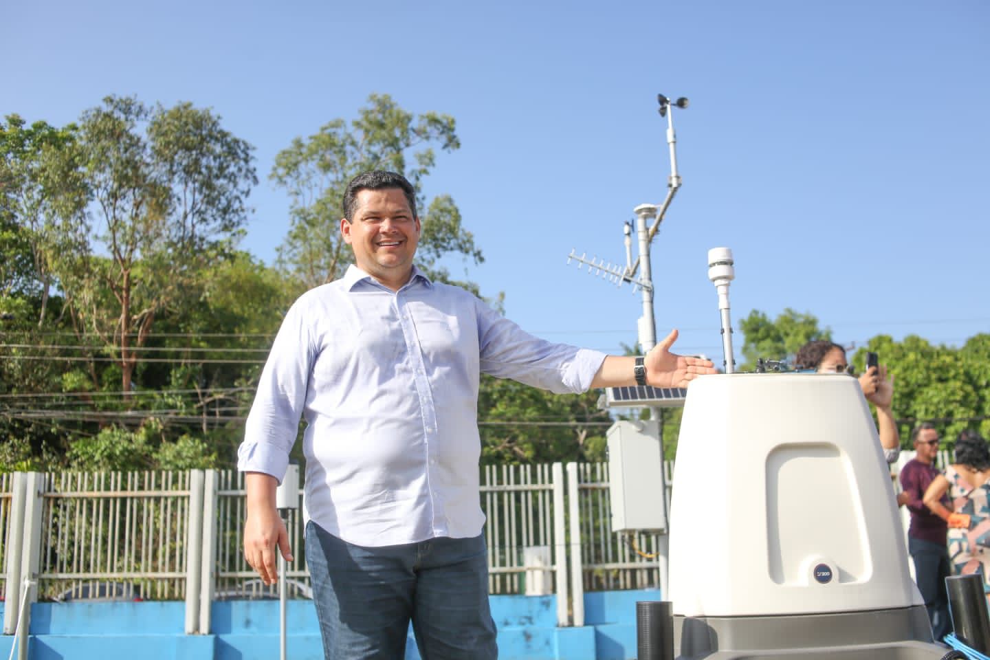 Antes do evento em Macapá, em outra parte da programação, Alcolumbre e o governador Clécio apertaram o botão que oficialmente pôs em operação uma das estações que irão medir os potenciais eólico e solar no estado. A estação foi inaugurada no SENAI, em Santana.
