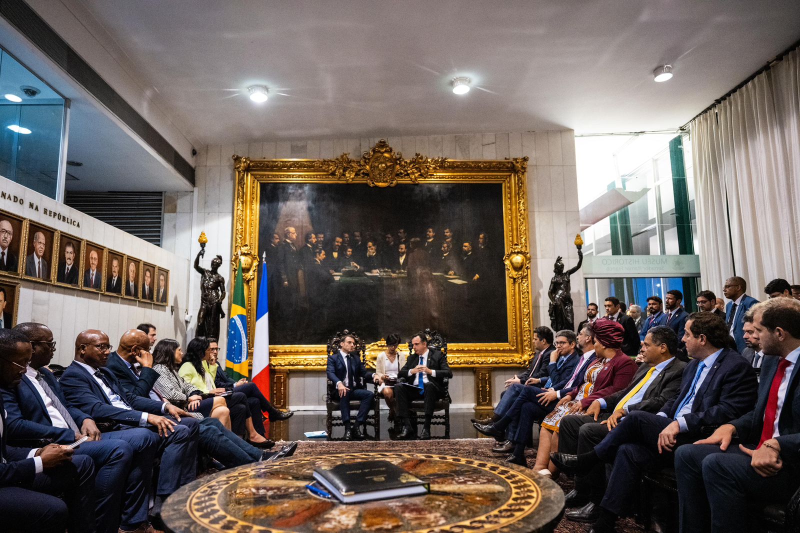 Parlamentar e governador Clécio participaram da comitiva que recepcionou o presidente francês, no Congresso Nacional