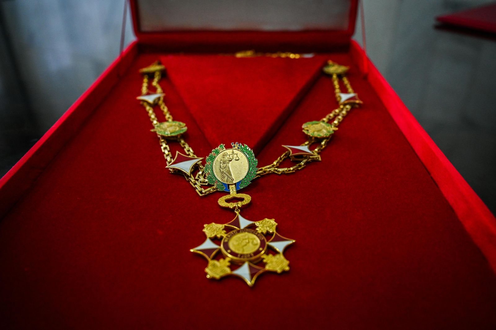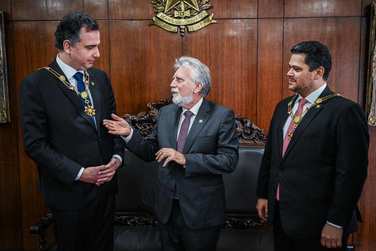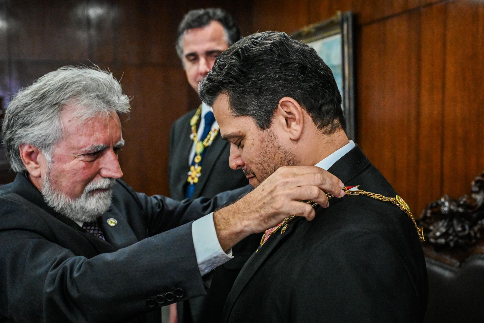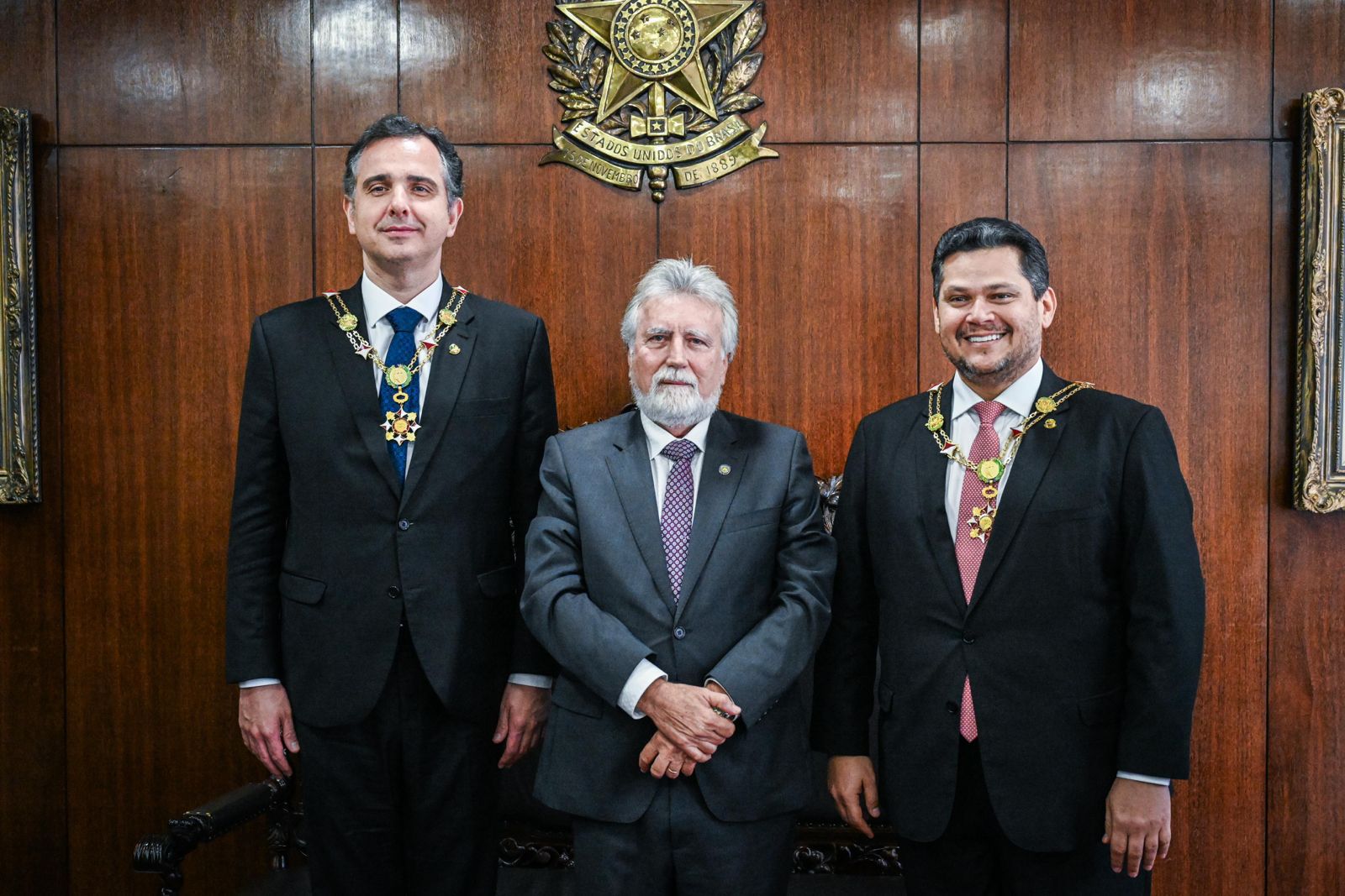 Além de Alcolumbre, o presidente da Casa, Rodrigo Pacheco (PSD-MG), também recebeu o Diploma e o Grão-Colar.