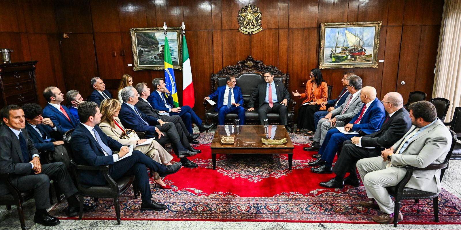 “O Senado da República reforça sua disposição ao diálogo, ao respeito e ao desejo de fortalecimento dos laços institucionais entre Brasil e Itália, dois países com uma ótima relação institucional. E reafirmo que o Legislativo brasileiro está de portas abertas para debates respeitosos, com ideias inovadoras, sempre em busca do bem comum”, disse o presidente.